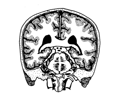 CT scan of a right-handed adult showing asymmetry of the cerebral cortex